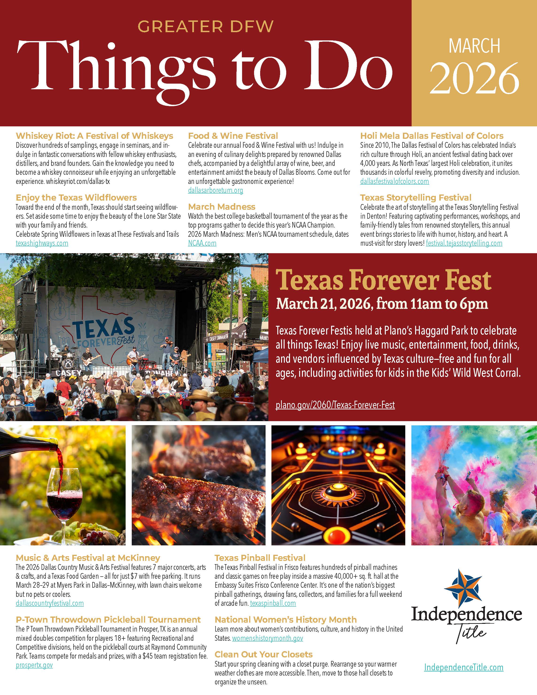 Thanks to Independence Title for this months event list.